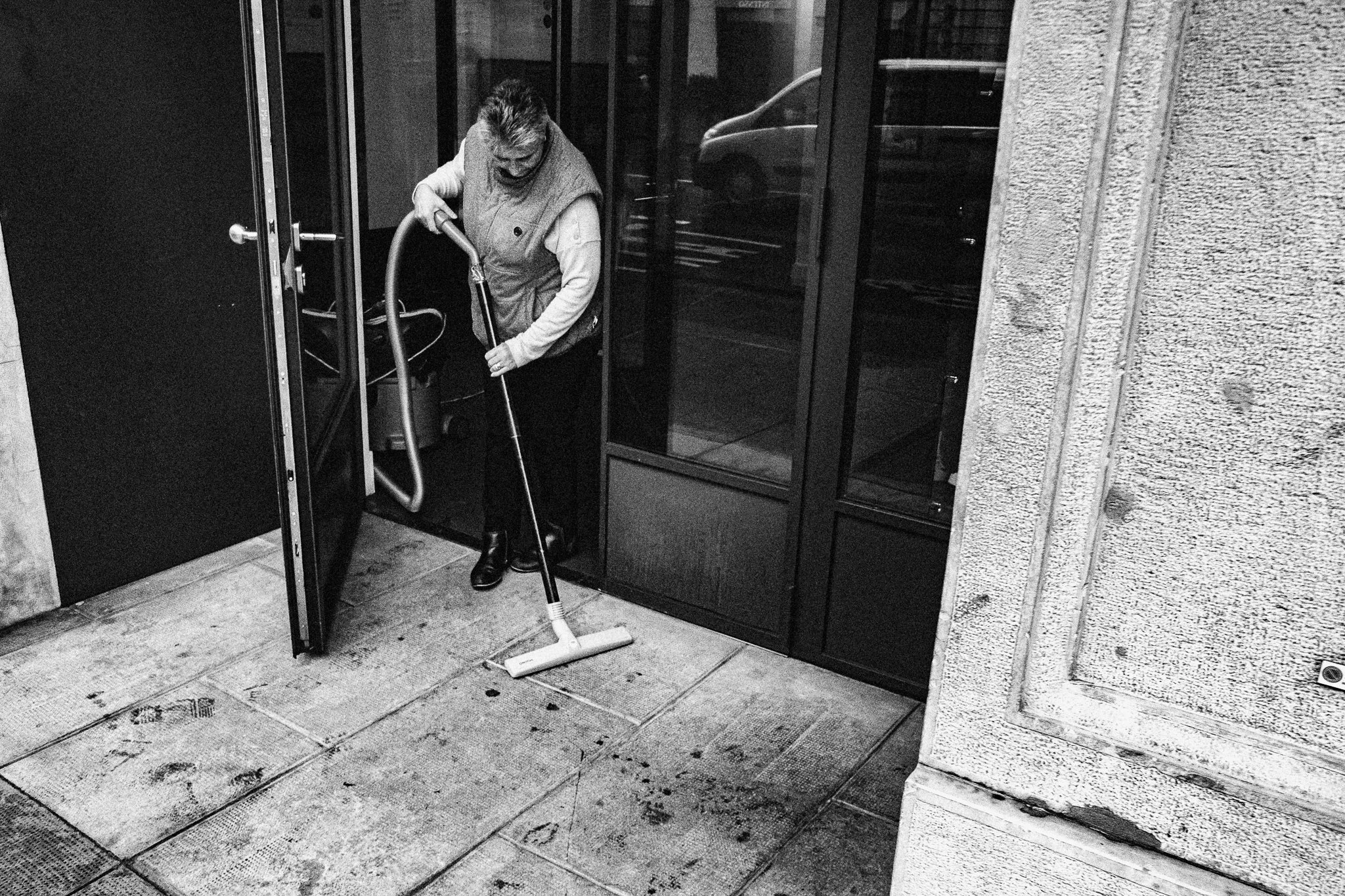 He captures everyday scenes spontaneously, in the city as well as elsewhere, in pursuit of authentic moments and raw emotions.