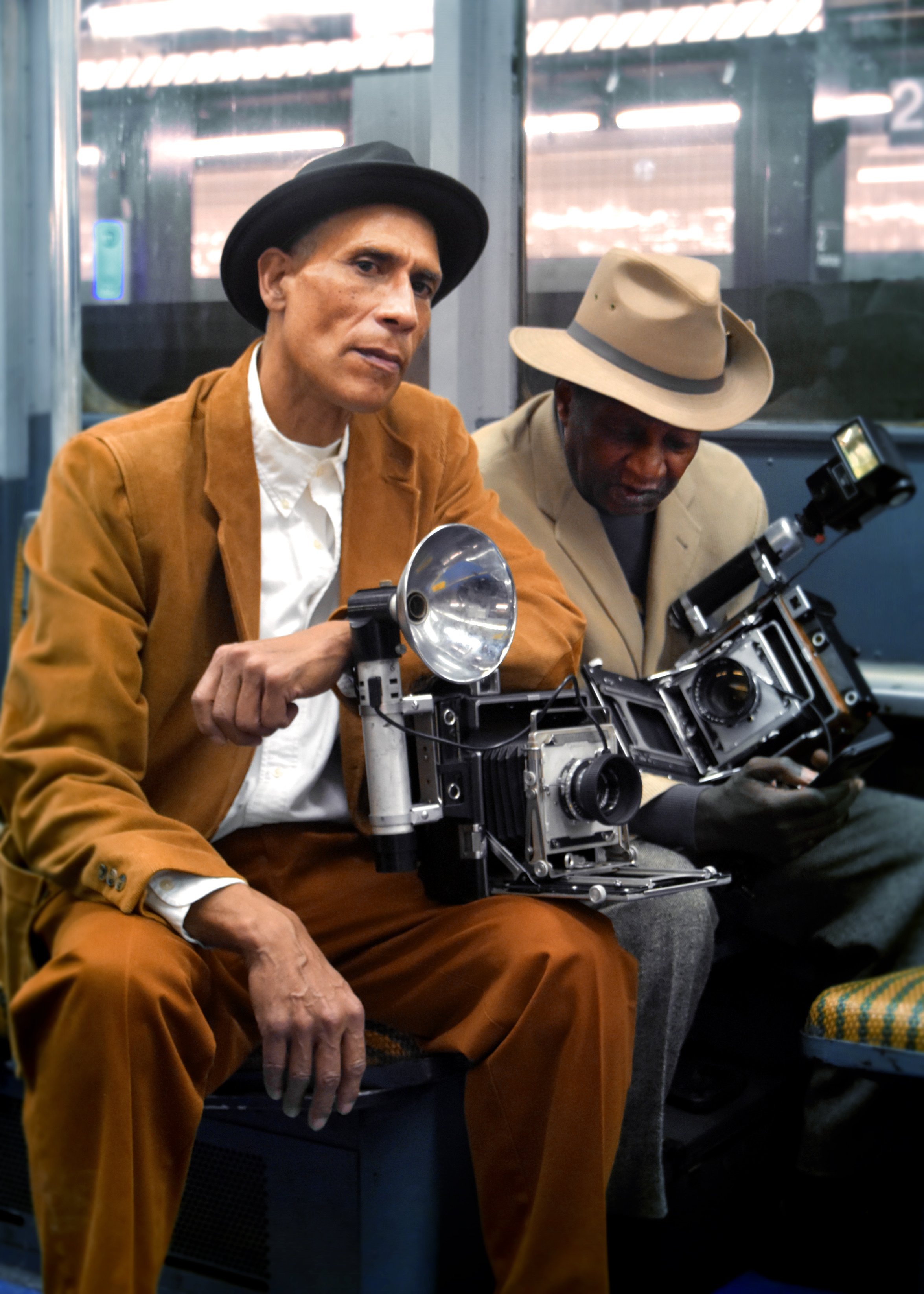 These Nostalgia Train rides are extremely popular, and many passengers choose to enhance the experience by dressing for the occasion as their grandparents might have, way back when. Some also participate in the events by providing live music from the era, or by performing in groups of swing dancers on the subway platforms. It’s New York, after all, so of course it’s a party. The Nostalgia Train is limited to a Sunday schedule, beginning after Thanksgiving and continuing through December, and covers only a few miles of one of the world’s most extensive subway systems. Needless to say, the vintage trains (as well as many of their colorful passengers) can offer an unusual opportunity for photography. However, there are some real challenges to be overcome: the rush-hour-like crowding, the constant lurching of the trains in motion, and the limited mobility are just a few.