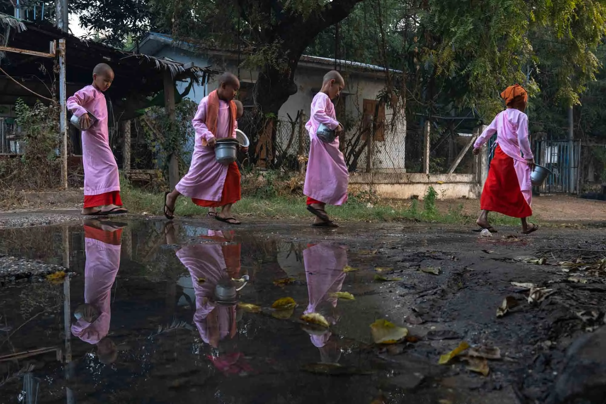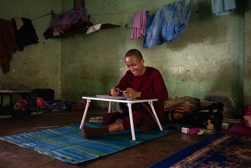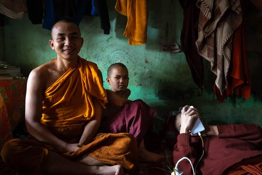 One of the most emotionally charged moments of my trip occurred as I captured the stories of young girls sent to the monasteries in Mandalay by their families seeking refuge. In a region where rebels had been infiltrating villages and committing atrocious acts of violence against women and girls, these monasteries provided a safe haven. I also spent time with young novices, and to my surprise, many of them were engrossed in their smartphones during breaks. This access to modern technology sparked my curiosity about how it might shape their lives of devotion, especially now that they were increasingly aware of a world beyond the monastery walls.