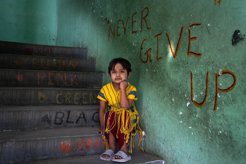 Upon my return to Mandalay, I directed my lens towards individuals who had fled active conflict zones and were now residing in makeshift shelters. These resilient souls were piecing together a semblance of normality amid the chaos and uncertainty of their lives. To my amazement, they greeted us with genuine smiles, exuding a quiet strength that left an indelible mark on my heart.